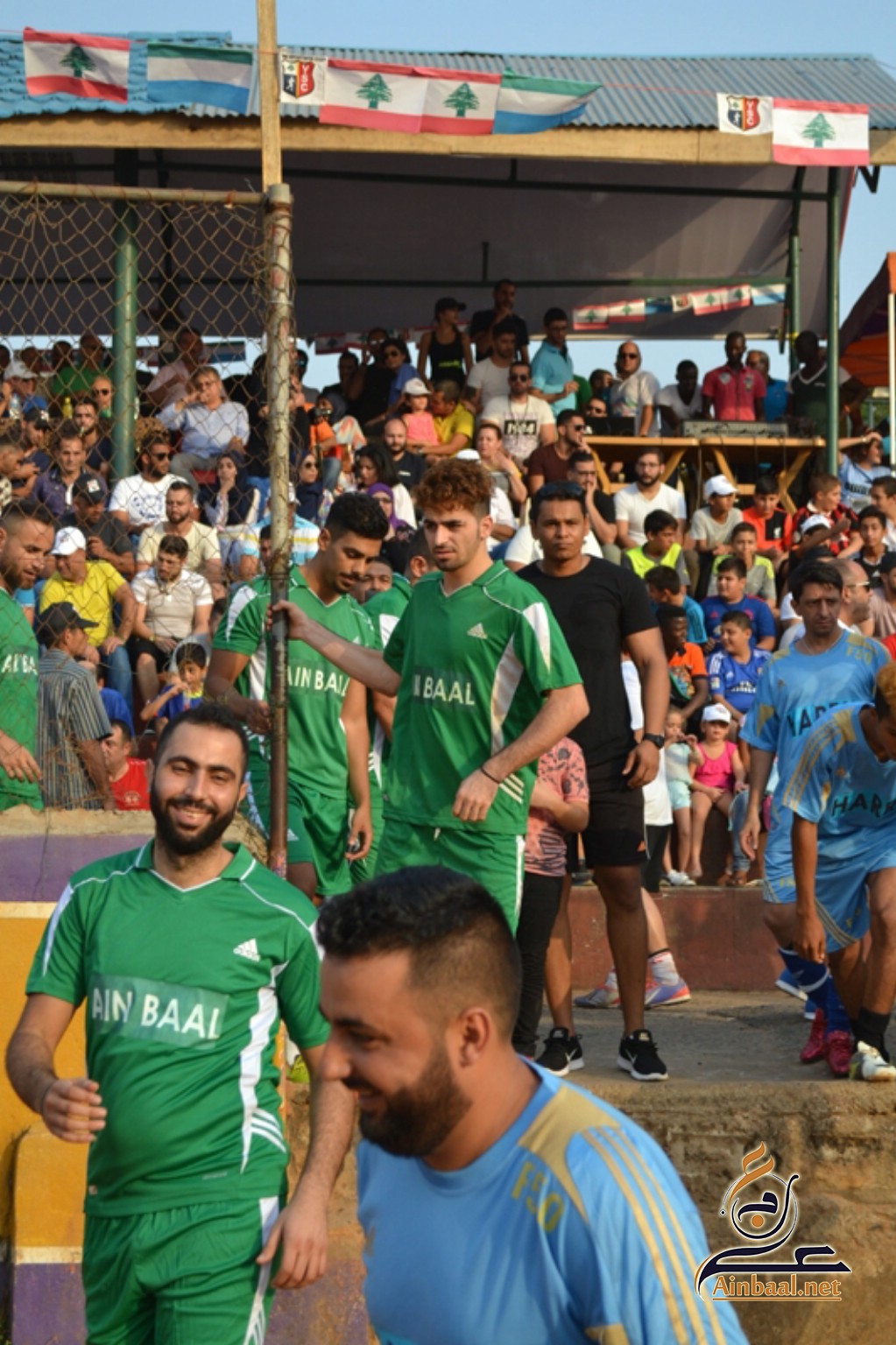 بعد مباراة شيّقة دامت 90 دقيقة وفي الدقائق الأخيرة،أحرز فريق عين بعال عبر بطله الكابتن فيصل عنتر الهدف القاتل لتنتهي النتيجة 2-1 ضد الفريق العزيز حاريص. بعد أن كان متغلباً على فريق عين بعال بفارق هدف عن طريق لاعبه المحترف علاء حسن في أول المباراة.وبهذا الهدف ملأت المدرجات بجوّ من الأعراس والإحتفالات ليتوّج فريق عين بعال بطلا لدورة القرى والبلدات في العاصمة العزيزة فريتاون.