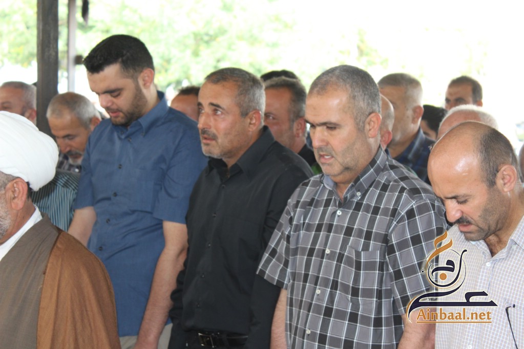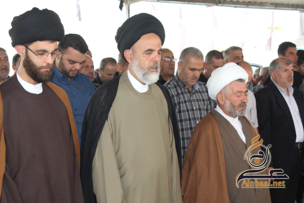 وأمَّ الصلاة على جثمانها الطاهر سماحة العلامة السيد إبراهم أبو الحسن بحضور إبنه سماحة السيد عباس أبو الحسن وسماحة الشيخ إبراهيم سليم، صباح يوم الإثنين الواقع فيه01/04/2017 عند الساعة الحادية عشرة صباحا في ساحة البلدة لتوارى الثرى في جبانة بلدتها عين بعال.